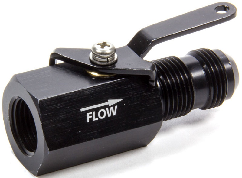 Shutoff Valve – Fuel Shutoff – Manual – 1/2 in NPT Female to 10 AN Male – Aluminum – Black Anodized – Each