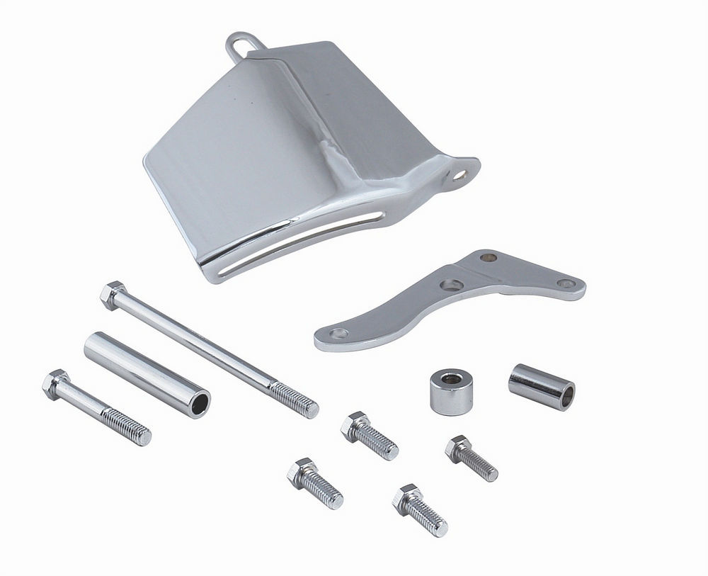 Alternator Bracket – Passenger Side – Mid Mount – Intake / Water Pump Mount – Steel – Chrome – Long Water Pump – Small Block Chevy – Kit