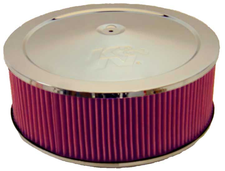 Air Cleaner Assembly – Custom – 14 in Round – 4.75 in Tall – 5-1/8 in Carb Flange – Dropped Base – K&N Logo – Steel – Chrome – Kit