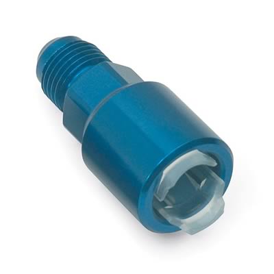 Fitting – Adapter – Straight – 6 AN Male to 5/16 in SAE Female Quick Disconnect – Aluminum – Blue Anodized – Each