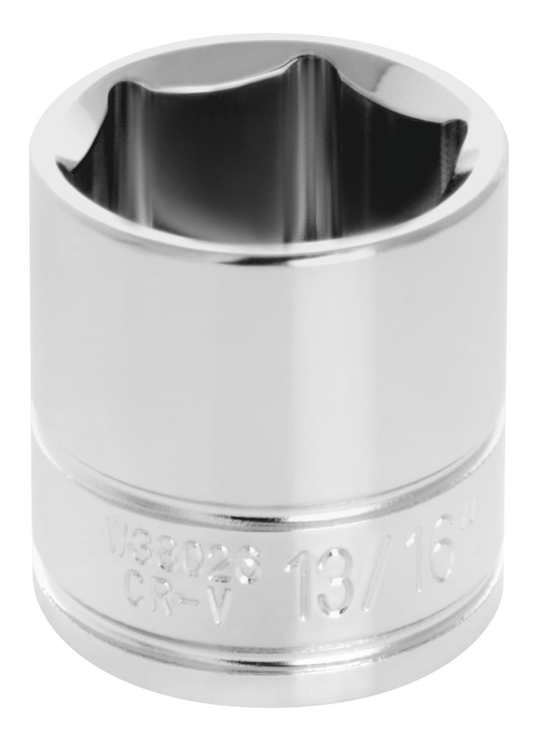 3/8 Inch Drive; 13/16 Inch; Standard; 6 Point; Polished Nickel Chrome Plated; Vanadium Alloy Steel; Single