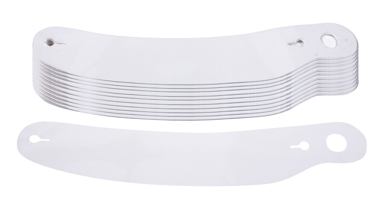 Helmet Shield Tear Off, 2 mm Thick, 12-3/8 in Center to Center, Curved, Plastic, Clear, Bell / G-Force / Pyrotect Helmets, Set of 20