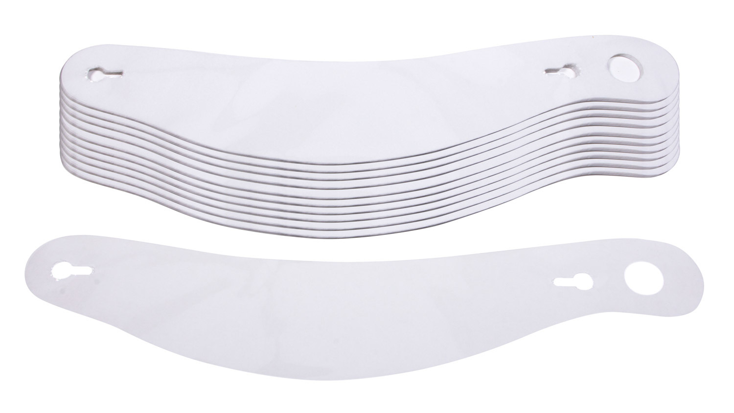 Helmet Shield Tear Off, 2 mm Thick, 13 in Center to Center, Curved, Plastic, Clear, Simpson Helmets, Set of 20